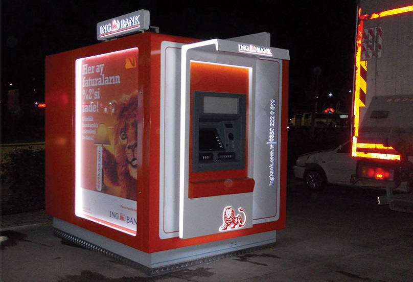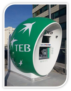 Bankamatik odaları Özet bir anlatımla Firmamız tarafından kabin imalatı olarak bilinmektedir. Bu imalat iç mekan ve dış mekan için farklı olarak tasarlanan degişik renk ve modellerde oluşmalktadır. Firmamızda kabin üretimi iç mekan için daha çok etkileyici ve şık bir tasarım üzerinde dururken, dış mekan kabinlerde özellikle dayanıklılık ve basit işlevsellik üzerinde durmaktadır. Firmamız her türlü kabin tasarımı ve üretimini yapmakta ve özel testlerden sonra kullanıcının hizmetine sunmaktadır. Yurt içinde ve yurtdışında bir çok Bankanın iç ve dış mekan Bankamatik odalarını tasralayıp üretmiştir .Büyük kuruluşlar arasında firmamızın tercih edilme sebebi kendi alanında uygun fiyatlar ve kalite konusundaki titizliği ön plana alınmıştır. ENG bugüne kadar Türkiye’deki birçok büyük bankanın ATM makinelerinin imalatını yapmıştır. ATM’nin dış tasarımı, iç aksesuarları, tüm elektronik teçhizatı ve bilgisayar sistemi dahil A’dan Z’ye tüm detayları son teknolojiyle üretmektedir. İran’nın en büyük 3 Bankasından biri olan Bank Saderat’ın başkent Tahran’daki en önemli şubelerinden birinin tüm iç ve dış Yenilenmesi ve ATM makinesi ilk kez Türkiye’de imal edip kendi elemanları aracılığıyla monte etmiştir.